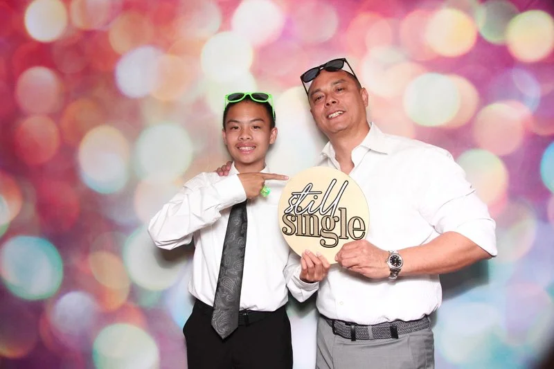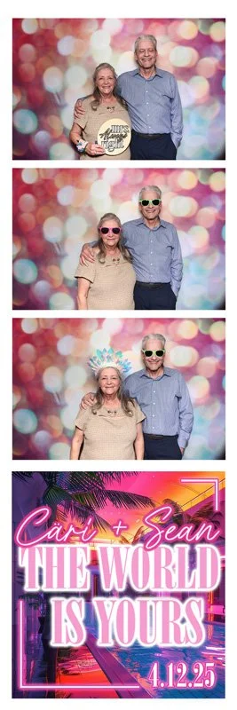 Bokeh & Birch photobooth co brought Sean and Cari's wedding to life! Guests flocked to the gorgeous exposed wood photo booth, eager to capture memories in the elegant yet playful setting that matched the overall vibe of the event. The boho-chic design of our photo booth provided a stunning visual element, while the modern features ensured that every smile and candid moment was preserved for the couple to cherish for years to come. To play into the theme of their wedding, Bokeh & Birch created a stunning personalized photo booth print design and matching booth touch screens. We also made sure to curate our prop boxes with not only wedding props, but also neon Ray-ban style glasses, inflatable 90s phone props, and more!