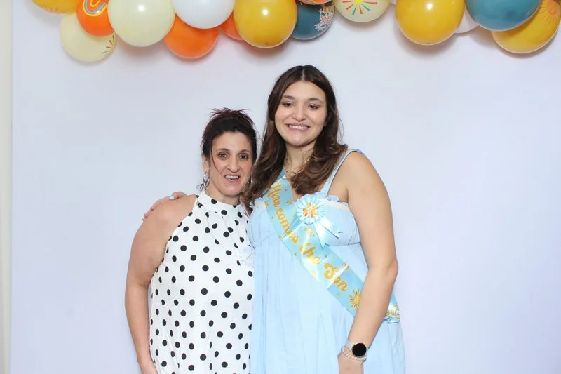 The baby shower was thoughtfully themed "Here Comes the Son," featuring a vibrant palette of retro-inspired colors paired with charming sun motifs scattered throughout the decor. Every detail—from the invitations to the centerpieces—reflected a warm, nostalgic vibe that perfectly matched the couple’s personal style and the excitement surrounding their growing family.