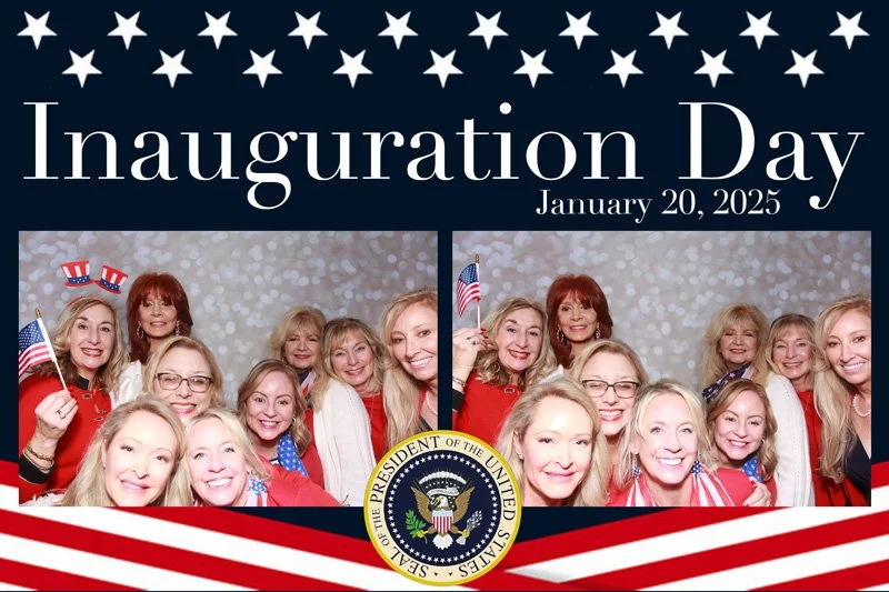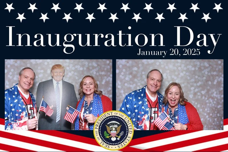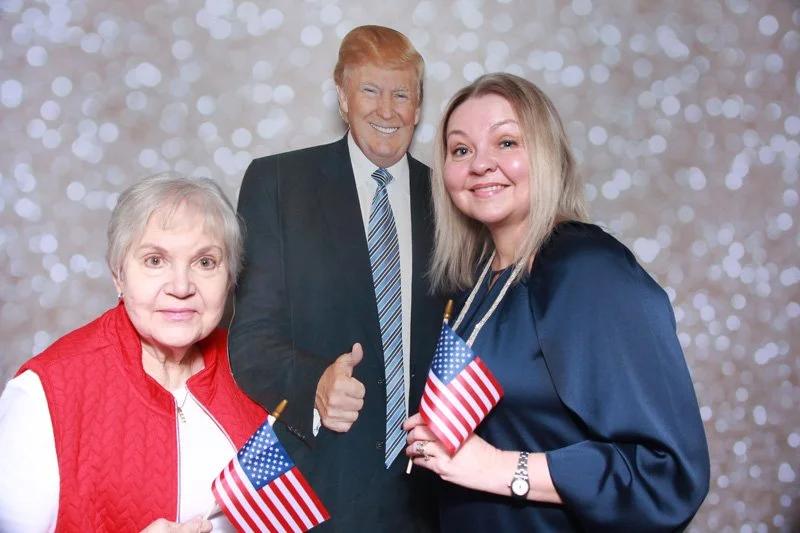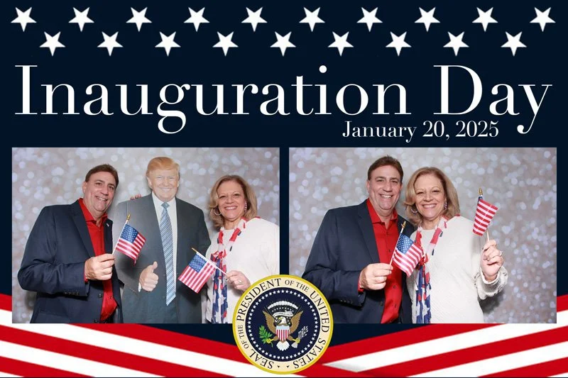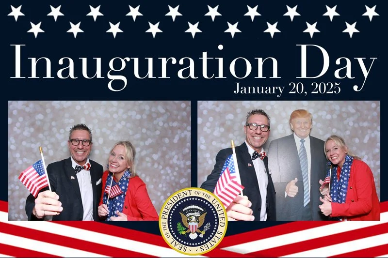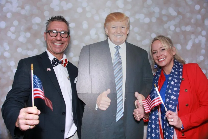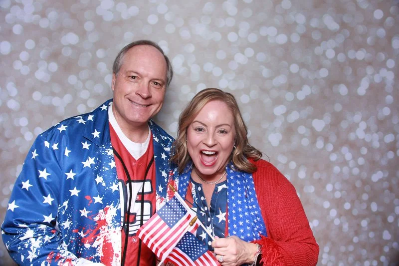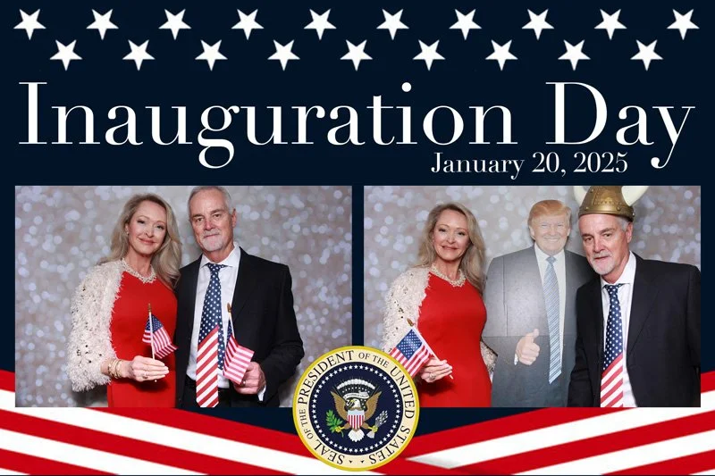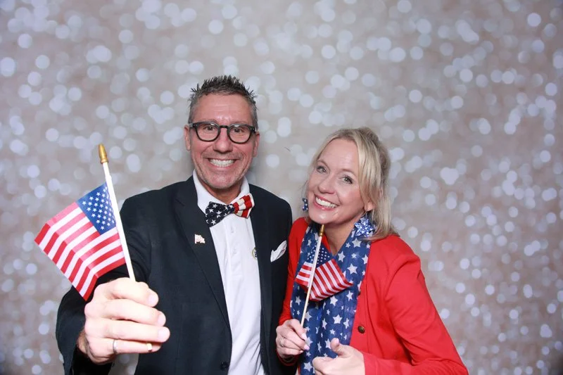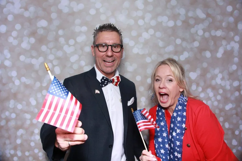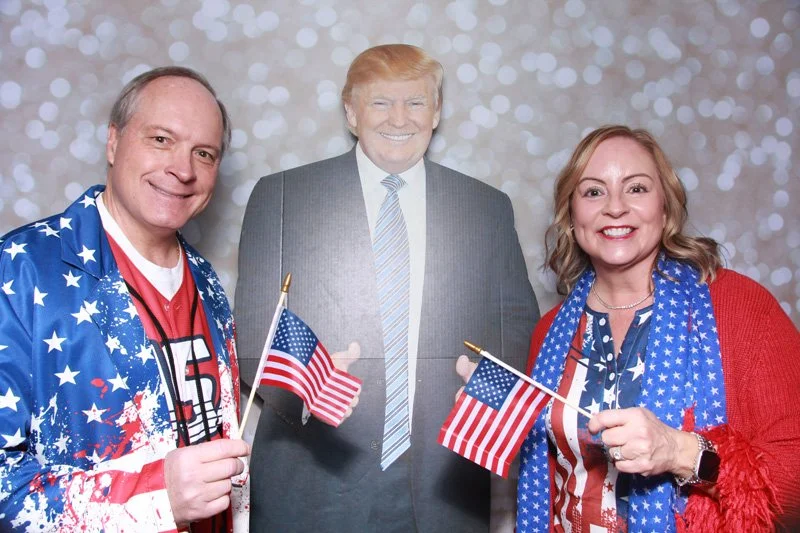 Bokeh & Birch had the pleasure of enhancing the festivities with our elegantly handcrafted birch wood photo booth, perfectly designed to complement the patriotic theme. Guests enjoyed capturing their joyful moments with an assortment of fun, themed props, including stars and stripes hats, American flags, and other spirited accessories. Some guests even enjoyed posing with a life size cut-out of President Trump for their photos. Our photo booth was not just a source of entertainment, but a beautiful addition that encapsulated the spirit of the day, leaving everyone with cherished keepsakes from this historic celebration.