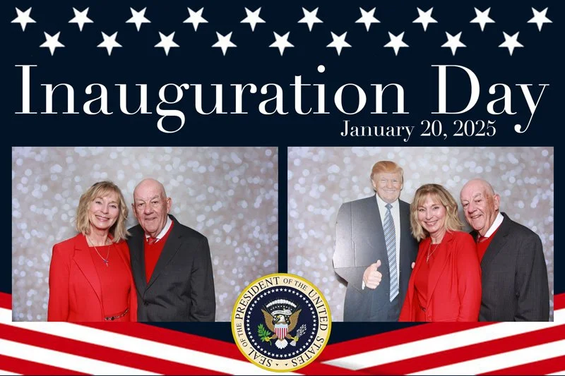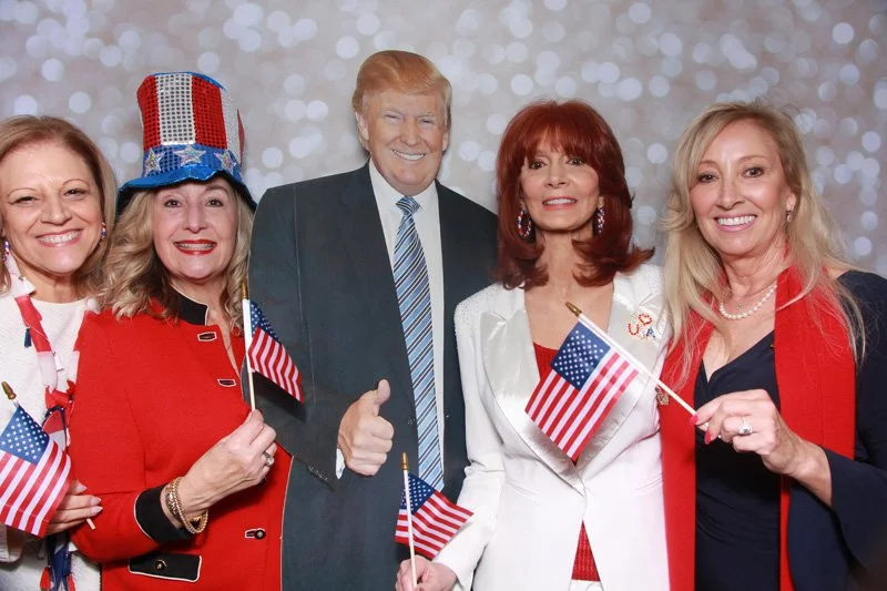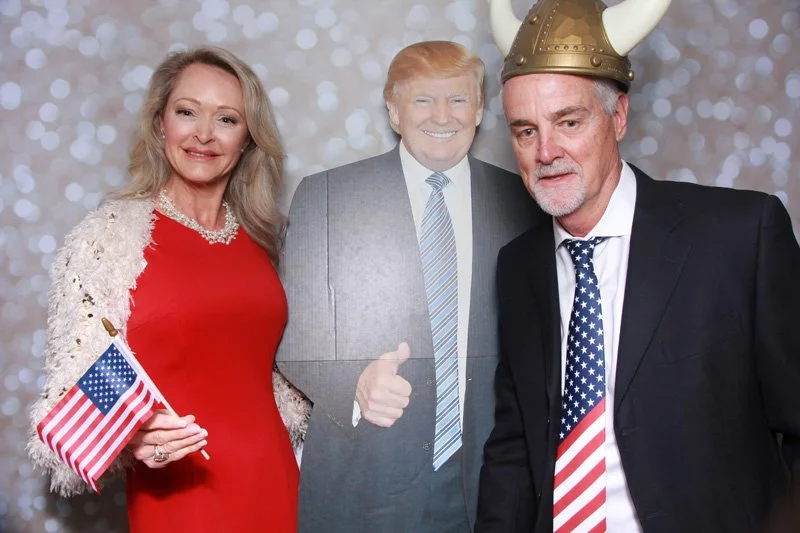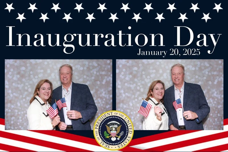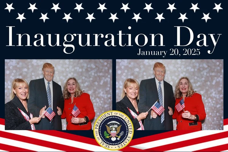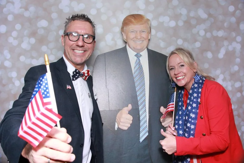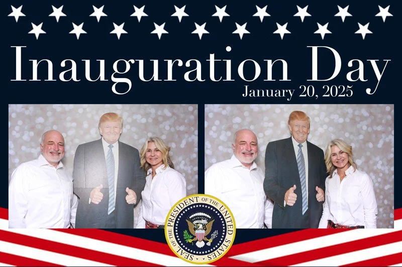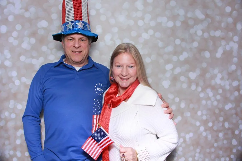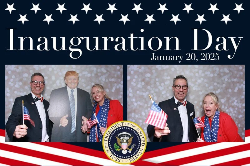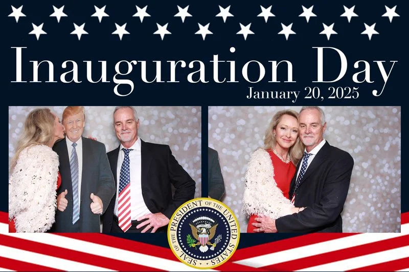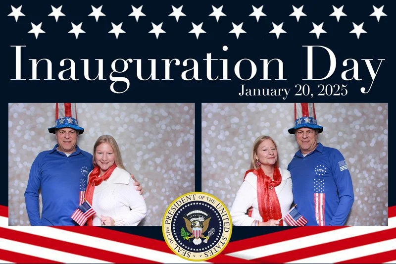 Bokeh & Birch had the pleasure of enhancing the festivities with our elegantly handcrafted birch wood photo booth, perfectly designed to complement the patriotic theme. Guests enjoyed capturing their joyful moments with an assortment of fun, themed props, including stars and stripes hats, American flags, and other spirited accessories. Some guests even enjoyed posing with a life size cut-out of President Trump for their photos. Our photo booth was not just a source of entertainment, but a beautiful addition that encapsulated the spirit of the day, leaving everyone with cherished keepsakes from this historic celebration.