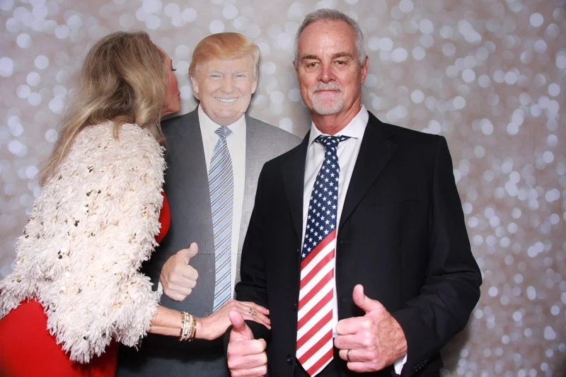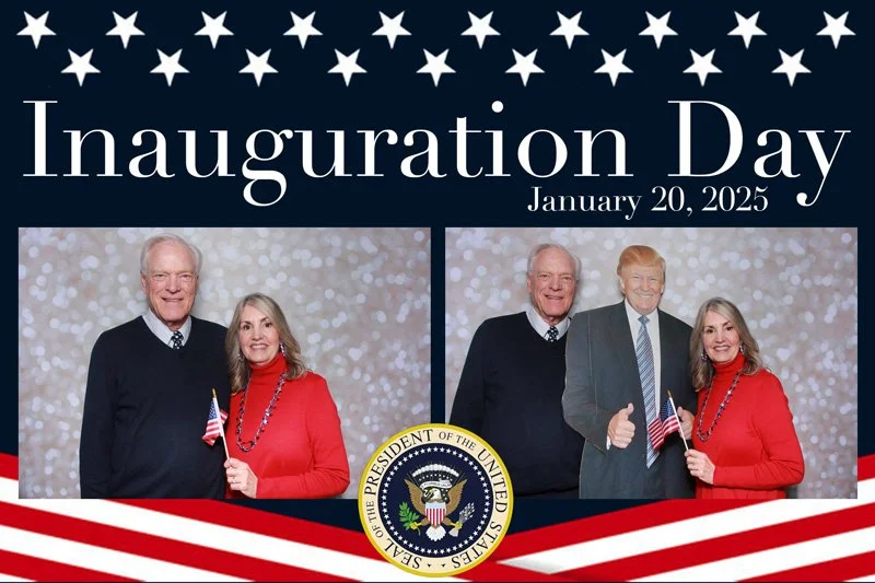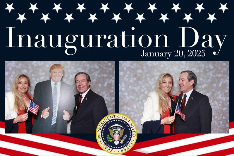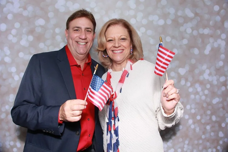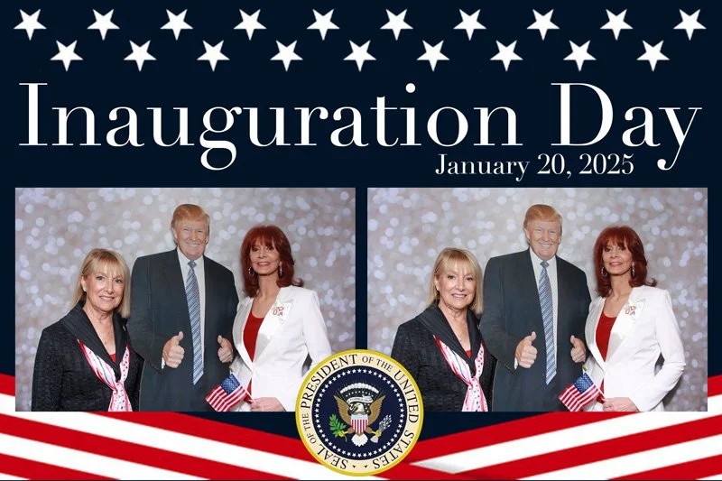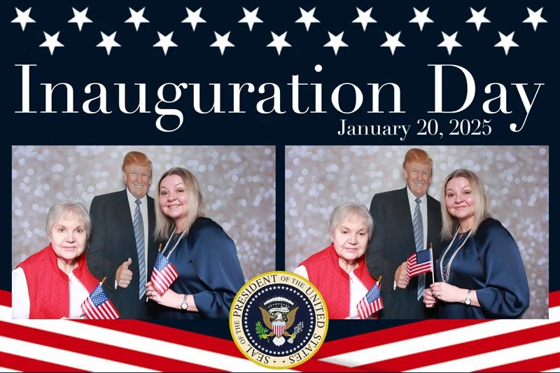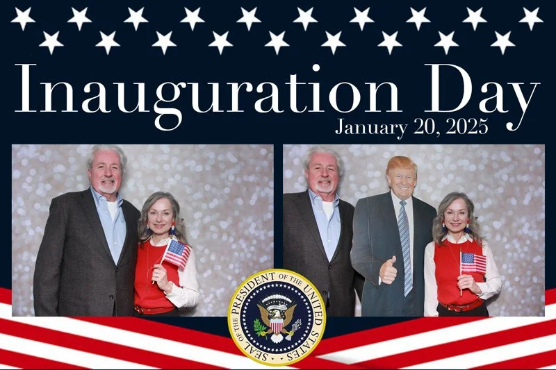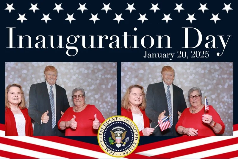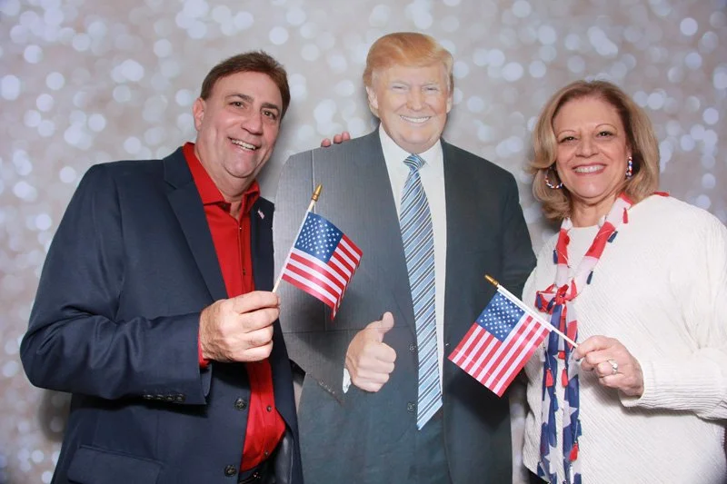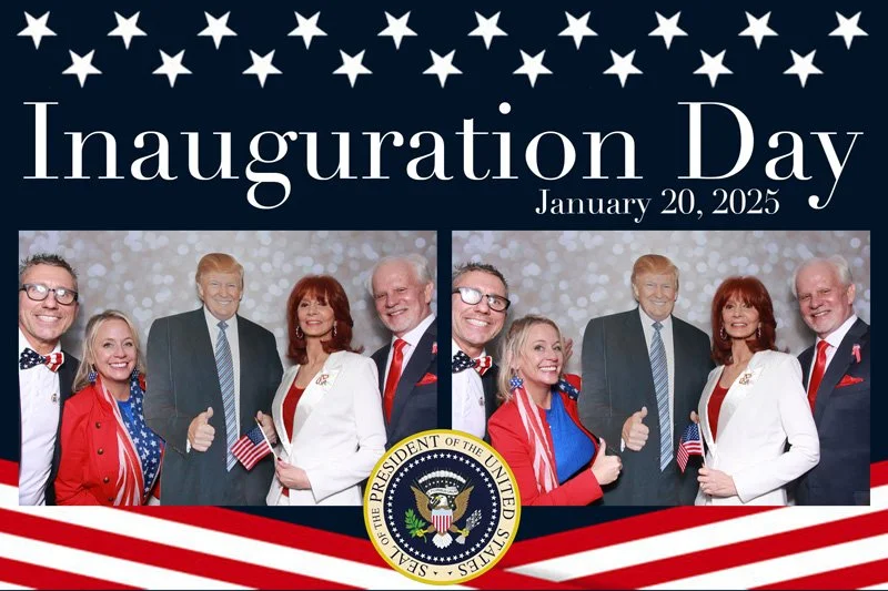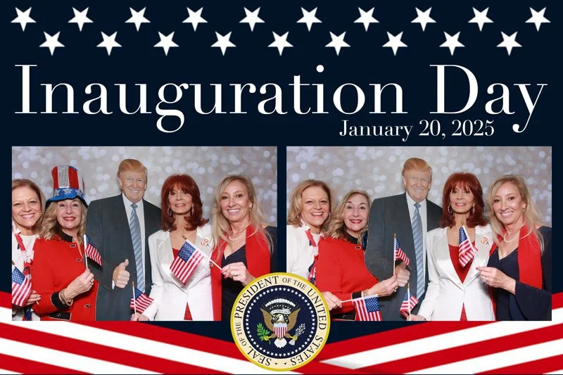 Bokeh & Birch had the pleasure of enhancing the festivities with our elegantly handcrafted birch wood photo booth, perfectly designed to complement the patriotic theme. Guests enjoyed capturing their joyful moments with an assortment of fun, themed props, including stars and stripes hats, American flags, and other spirited accessories. Some guests even enjoyed posing with a life size cut-out of President Trump for their photos. Our photo booth was not just a source of entertainment, but a beautiful addition that encapsulated the spirit of the day, leaving everyone with cherished keepsakes from this historic celebration.