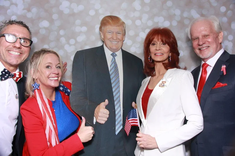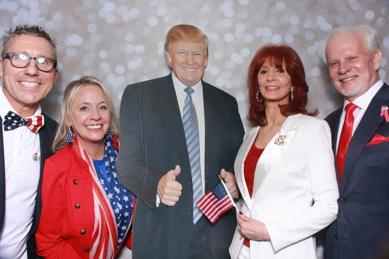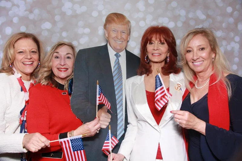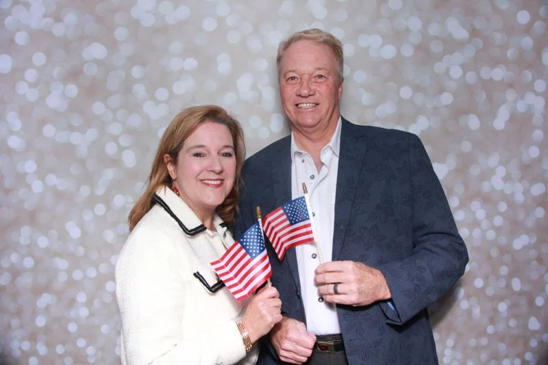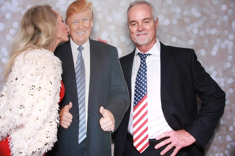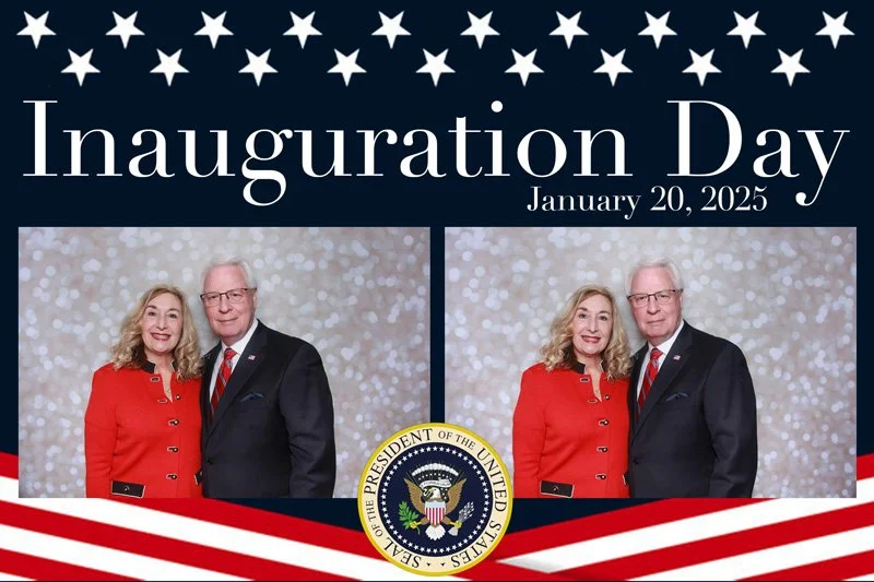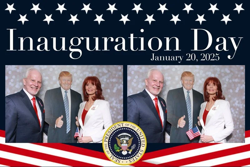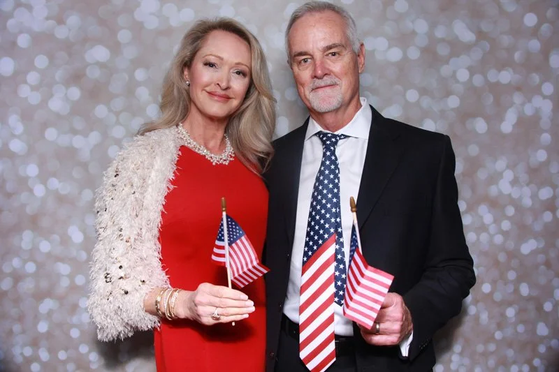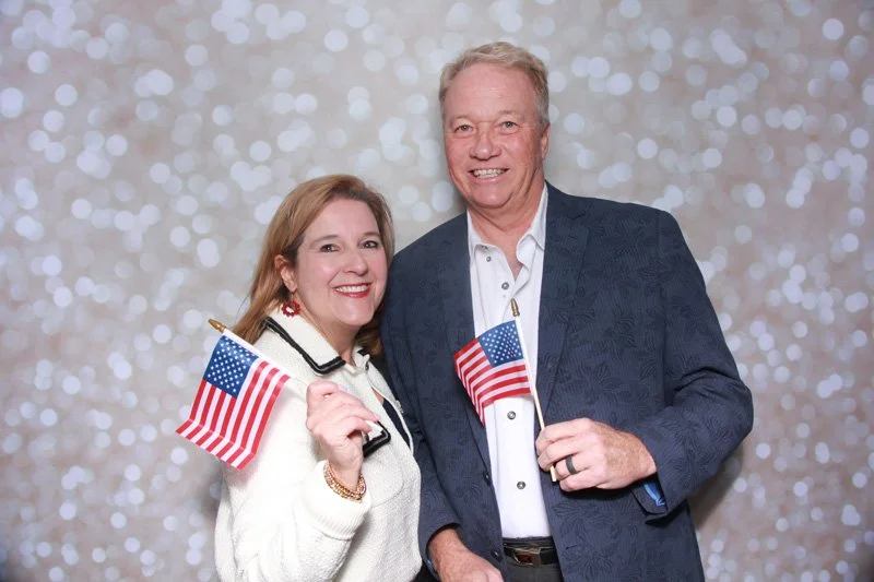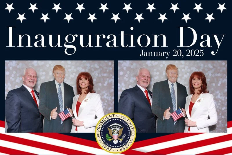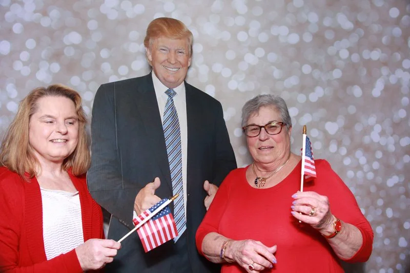 Bokeh & Birch had the pleasure of enhancing the festivities with our elegantly handcrafted birch wood photo booth, perfectly designed to complement the patriotic theme. Guests enjoyed capturing their joyful moments with an assortment of fun, themed props, including stars and stripes hats, American flags, and other spirited accessories. Some guests even enjoyed posing with a life size cut-out of President Trump for their photos. Our photo booth was not just a source of entertainment, but a beautiful addition that encapsulated the spirit of the day, leaving everyone with cherished keepsakes from this historic celebration.