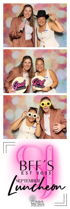 Bokeh & Birch was proud to provide its signature handcrafted, birch wood photo booth for the occasion. Our photo booth seamlessly blended rustic elegance with modern features, capturing the fun and flair of every pop star-inspired outfit. With over five years of experience, our custom wood photo booths add a timeless boho-chic touch to any event, making moments last long beyond the final snapshot. The St Johns BFF luncheon was no exception, as guests enjoyed creating lasting memories in style.